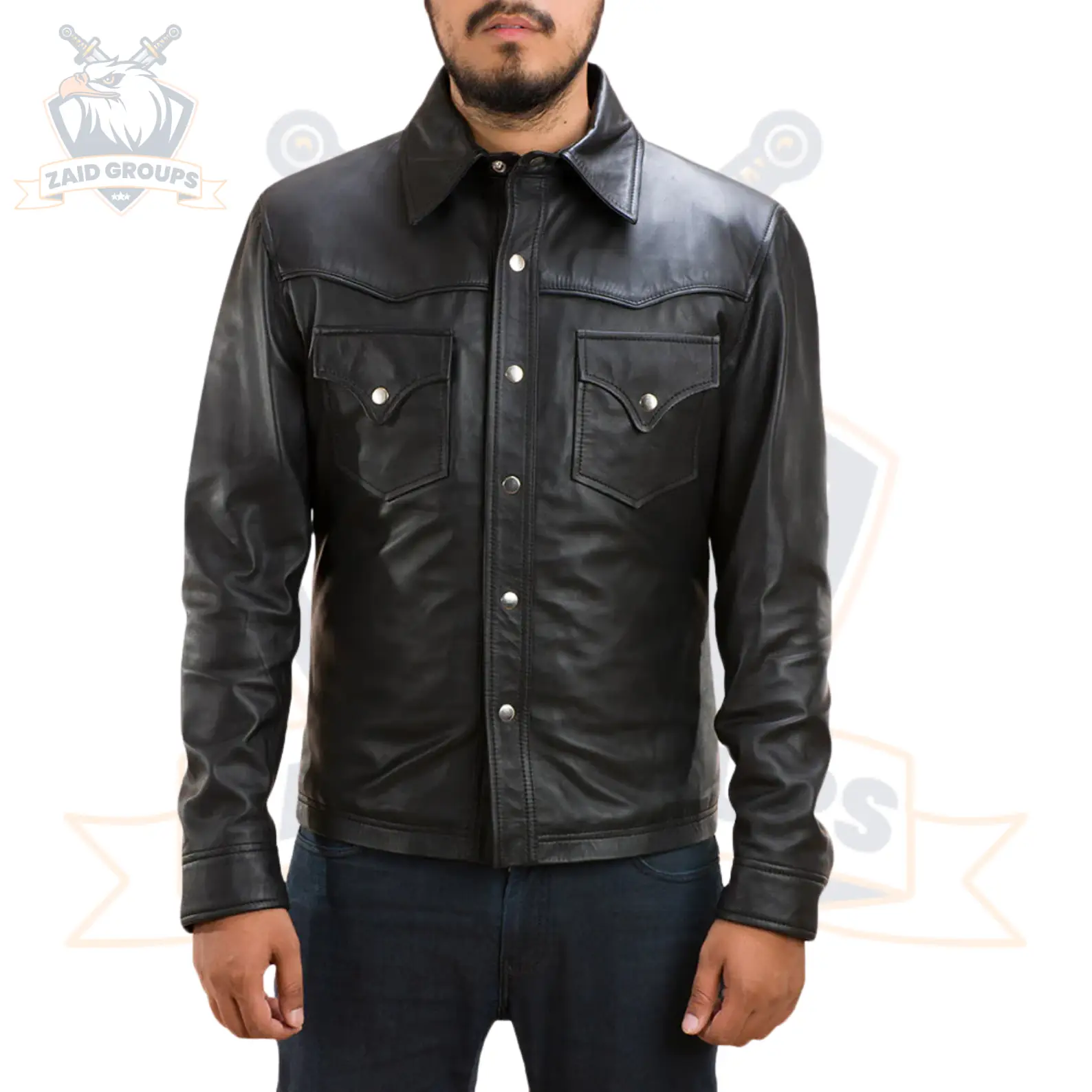 Ranchson Black Leather Shirt – All Sizes Available – Add any Text, Logo, Numbers – Free Customization